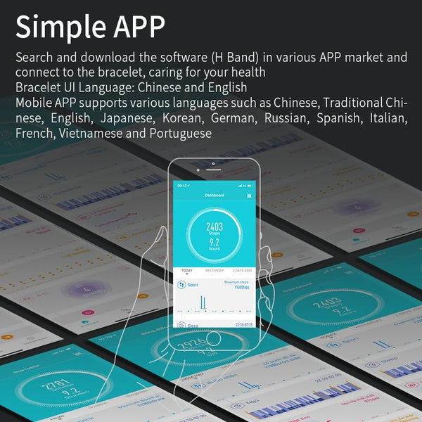 10. Main features: continuous heart rate test, pedometer, calories, distance, motion trace, sleep monitoring, call reminder, alarm reminder, hand-on bright screen, social sharing (WeChat, QQ, Facebook, Twitter), shake hand to take phonto, etc.