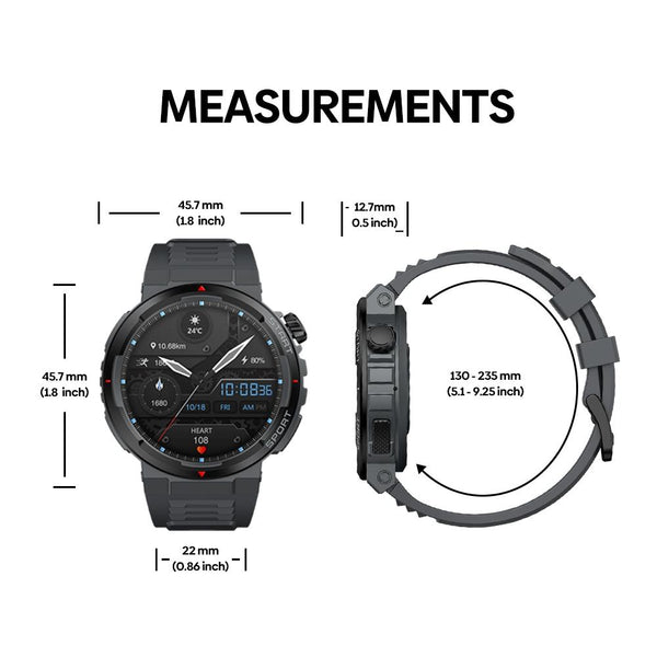 17. Size: Dial 45.7x45.7x12.7mm , Wristband width 22mm, range of circumference 130-235 mm