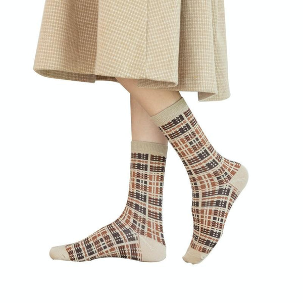 1pair Women Autumn and Winter Socks Brown Color Thick Retro Mid-calf Socks, Style: Stripe