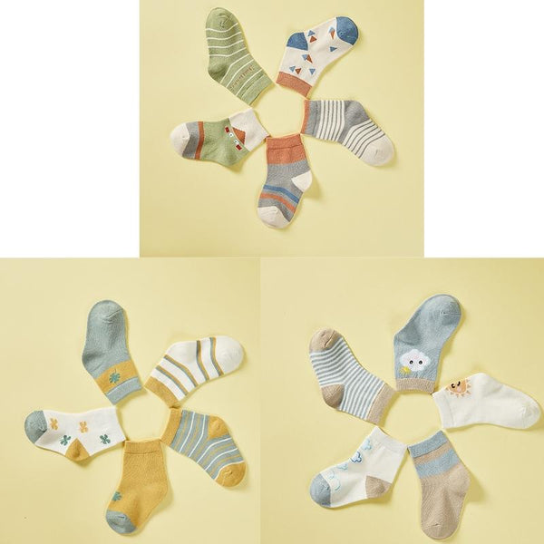5 Pairs / Pack Spring And Summer Children Socks Combed Cotton Tube Socks M(Lucky Clover)