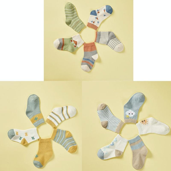 5 Pairs / Pack Spring And Summer Children Socks Combed Cotton Tube Socks XL(Lucky Clover)
