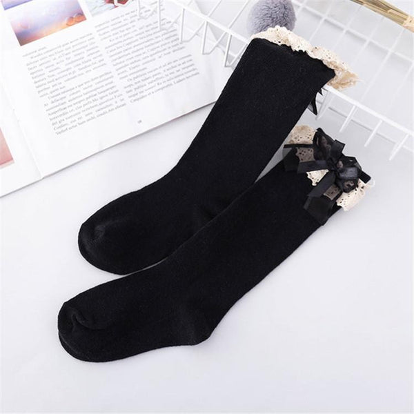 Baby Princess Tall Princess Socks with Lace Bow, Suitable Age:0-2 Years Old(Black)
