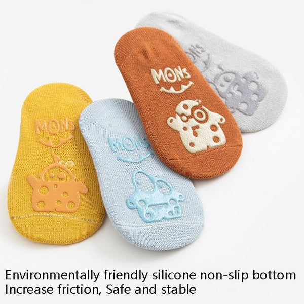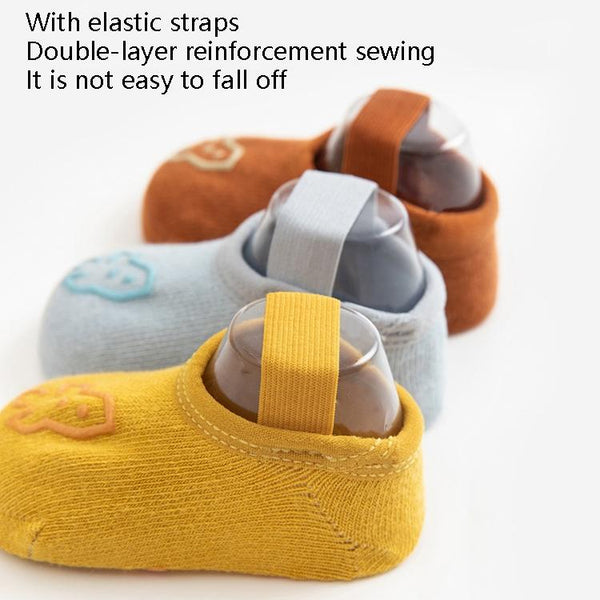 Baby Socks Cartoon Print Glue Strap Baby Anti-Slip Floor Socks Size: S 0-1 Years Old(Brown)