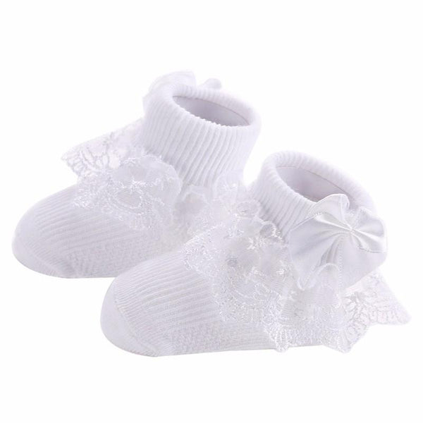 Bow Lace Baby Socks Newborn Cotton Baby Sock, Size:M(White)