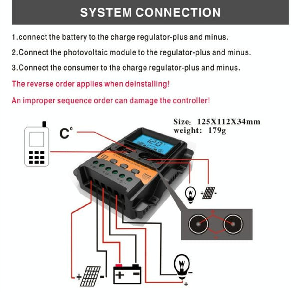 1. The controller is 12V/24V automatic recognition, when installing for the first time, please make sure the battery has enough voltage so that the controller can recognize the correct battery type