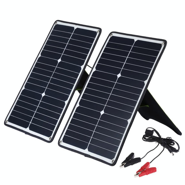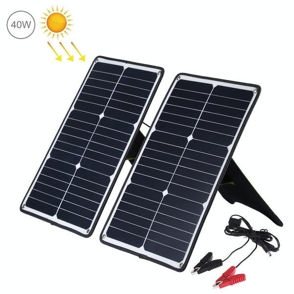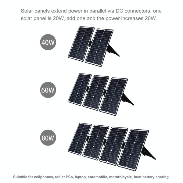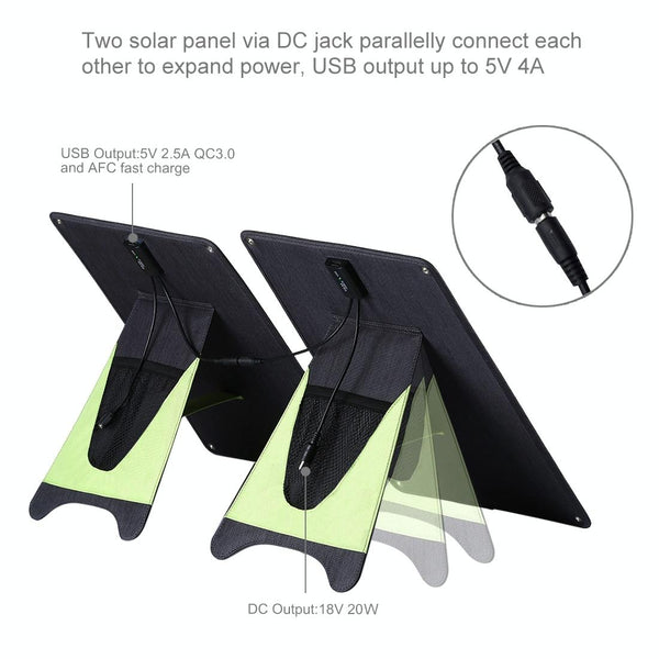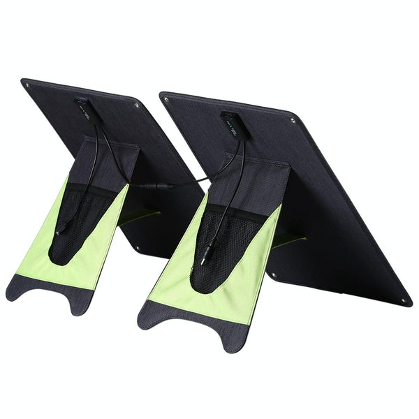 HAWEEL 2 PCS 20W Monocrystalline Silicon Solar Power Panel Charger, with USB Port & Holder & Tiger Clip, Support QC3.0 and AFC(Black)