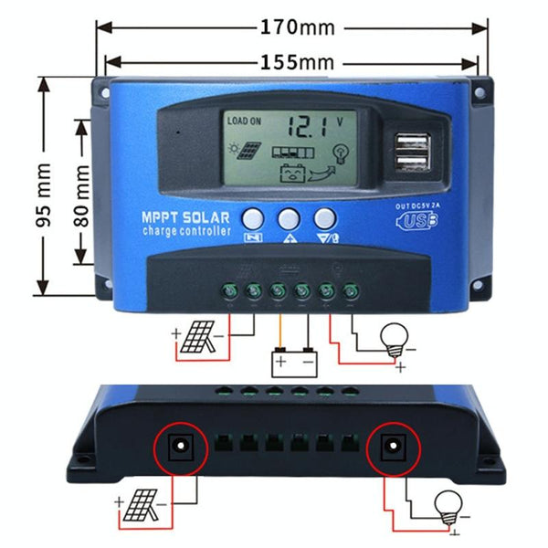 YCX-003 30-100A Solar Charging Controller with LED Screen & Dual USB Port Smart MPPT Charger, Model: 12/24/36/48/60V 100A