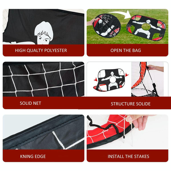 2 In 1 Pop Up Goal Football Training Goal Portable Football Cage For Indoor And Outdoor Use(Red)