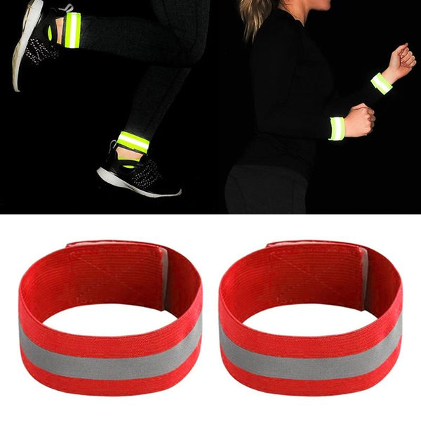 2pcs Reflective Band Outdoor Sports Running Cycling Night Warning Wrist Band(Red)