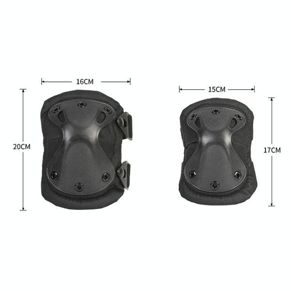 8. Dimensions: Knee pads 16 x 20 x 6.5cm (W x H x D), elbow pads 15 x 17 x 5cm