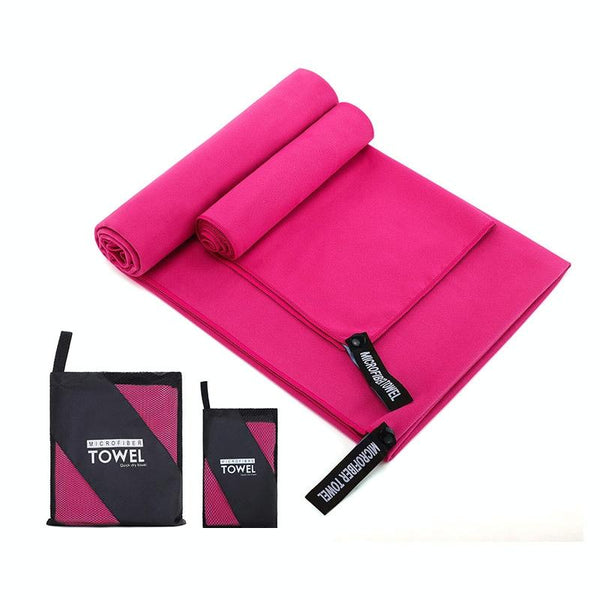 Absorbent Quick Dry Sports Towel Microfiber Bath Towel 40x80cm(Rose Red Square Mesh Bag)