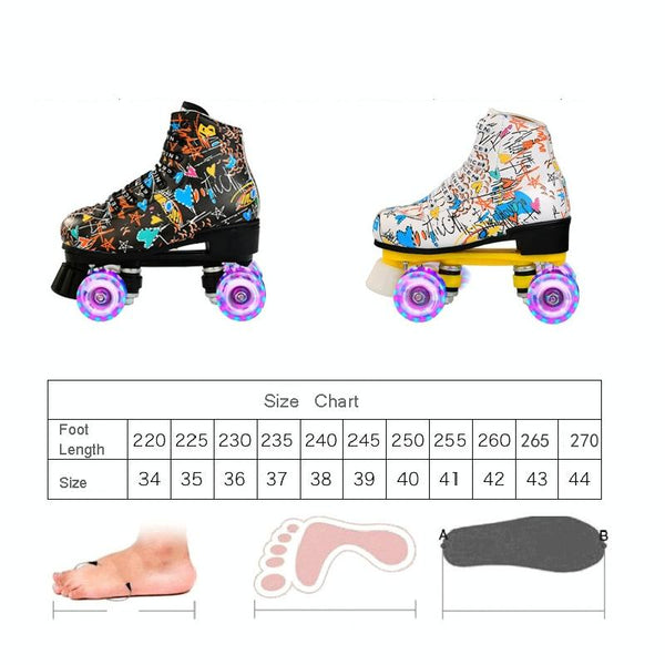 Adult Children Graffiti Roller Skates Shoes Double Row Four-Wheel Roller Skates Shoes, Size: 37(Flash Wheel White)