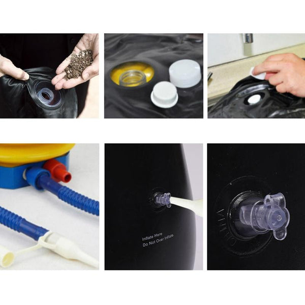 10. How to use: Fill the bottom air chamber with sand or rice first (the more the better, the more stable it is, do not fill water), and then fill the upper air chamber with full air (do not pull out the lower plug after inflating)