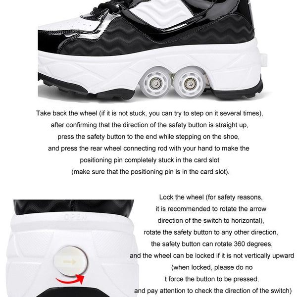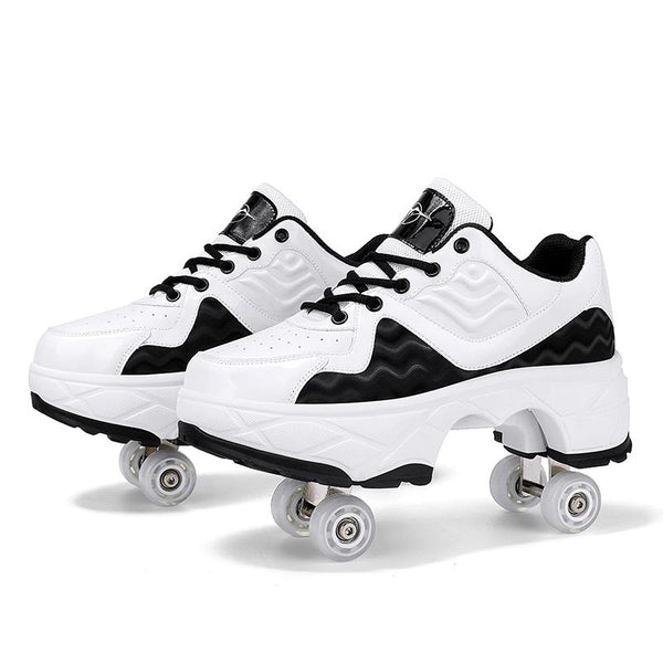 Deformable Four-wheel Retractable Double-row Dual-purpose Roller Skates, Size: 37(DF09 White Black)