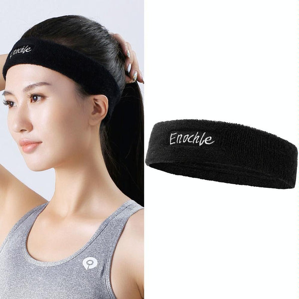 Enochle Sports Sweat-Absorbent Headband Combed Cotton Knitted Sweatband(Black)
