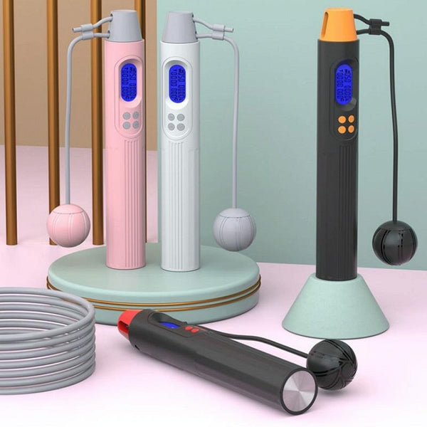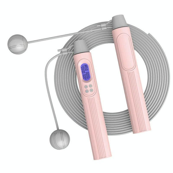Fitness Smart Counting Slub Wire Skipping Rope Dual Purpose Corded / Cordless Jump Rope(Gray Pink)