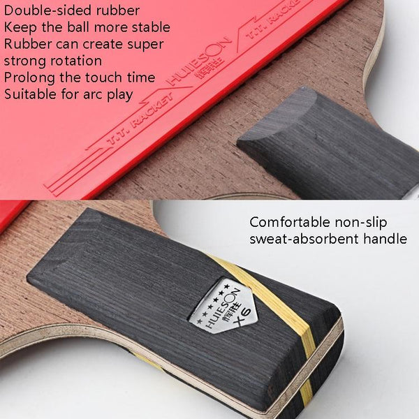 HUIESON Six Star 5-Layer Chicken Wing Tip + 2 Layer Carbon Double Side Continuous Table Tennis Racket, A Pair(Hand-shake Grip Racket)