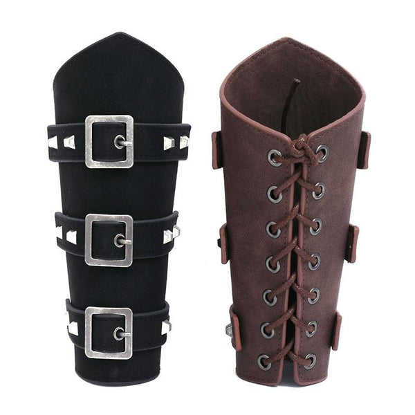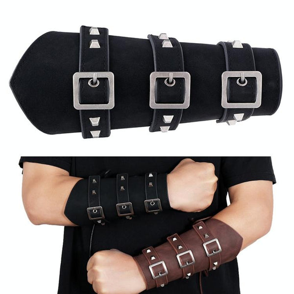 P01994 Men Leather Bracer Personality Punk Riding Arm Guard(Black)