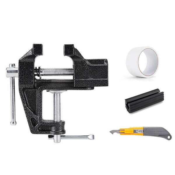 1. Snap the base of the vise clamp into the bottom of the table, then screw it down to fix it