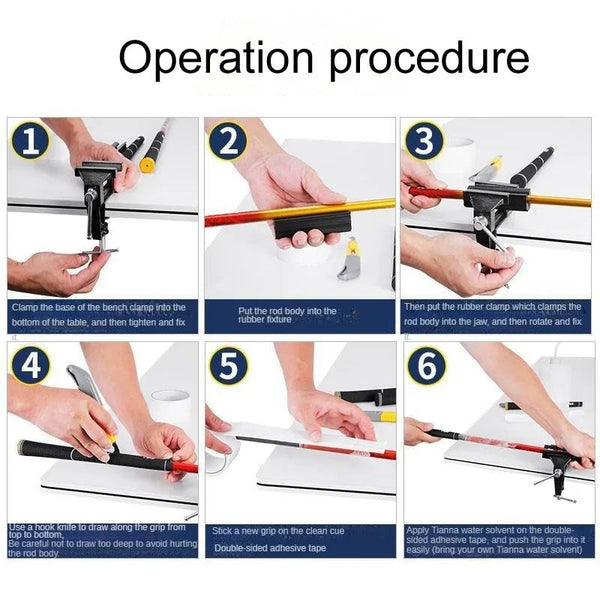 4. Use the hook knife to scratch along the grip from top to bottom, being careful not to scratch too deeply so as not to injure the pole body