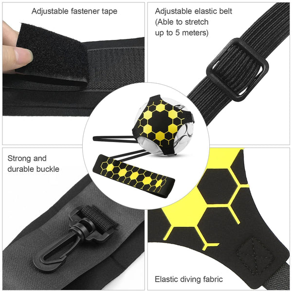 2. Versatile hook and loop fastener design: Equipped with a hook and loop fastener strap that adjusts to fit soccer balls of various sizes (3, 4, and 5). This feature ensures the ball stays securely in place during intense training sessions.