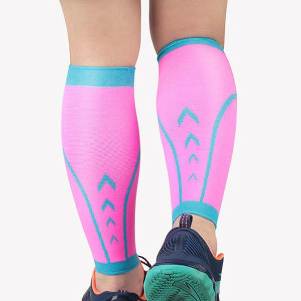 Sports Calf Cover Knitted Breathable Compression Leg Socks Basketball Football Running Protective Gear, Specification:L (Pink + Blue)