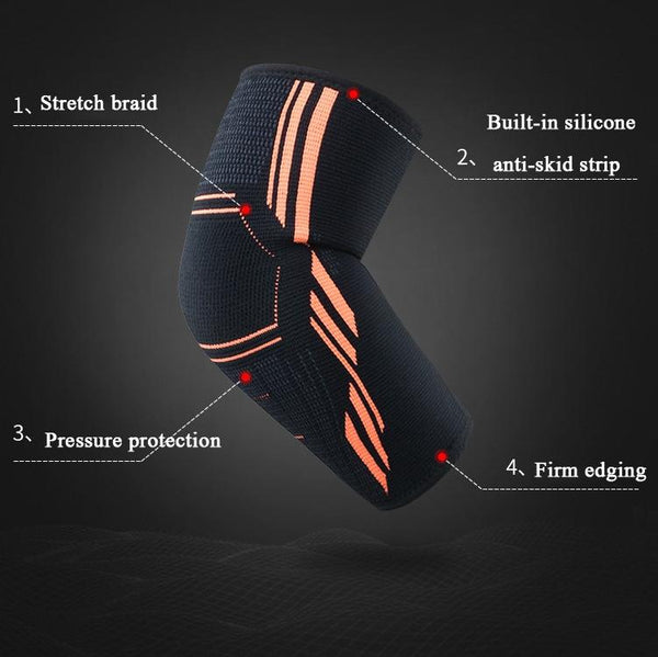Sports Elbow Pads Breathable Pressurized Arm Guards Basketball Tennis Badminton Elbow Protectors, Size:XL (Black Orange)