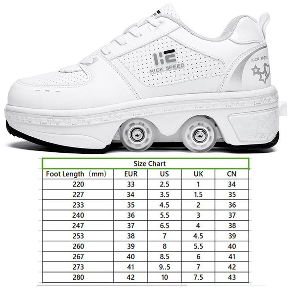 Two-Purpose Skating Shoes Deformation Shoes Double Row Rune Roller Skates Shoes, Size: 42(High-top With Light (White))