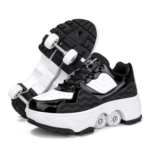 With Brakes Deformable Four-wheel Retractable Double-row Dual-purpose Roller Skates, Size: 36(DF08 Black)