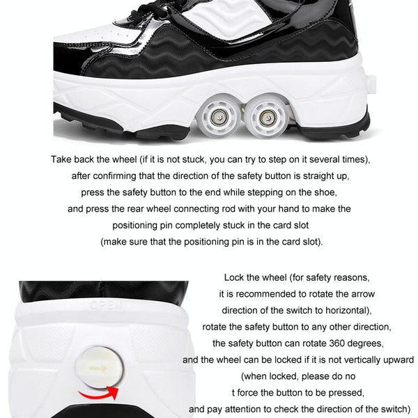 With Brakes Deformable Four-wheel Retractable Double-row Dual-purpose Roller Skates, Size: 36(DF08 White)