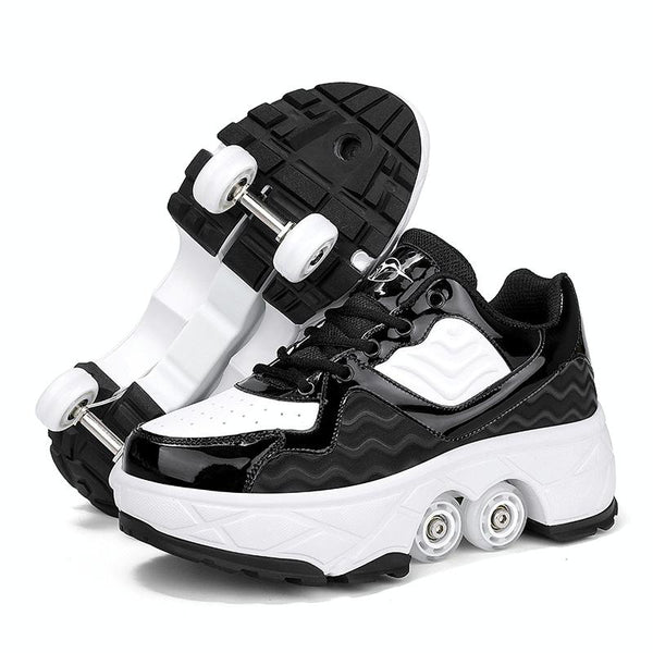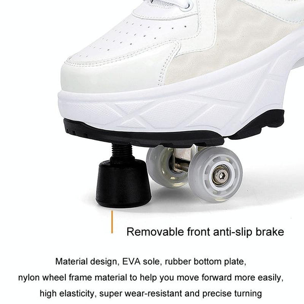 With Brakes Deformable Four-wheel Retractable Double-row Dual-purpose Roller Skates, Size: 40(DF08 Black)