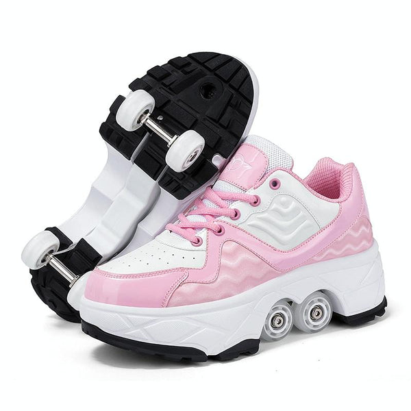 With Brakes Deformable Four-wheel Retractable Double-row Dual-purpose Roller Skates, Size: 41(DF08 Pink)