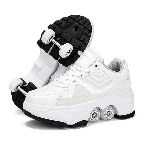 With Brakes Deformable Four-wheel Retractable Double-row Dual-purpose Roller Skates, Size: 42(DF08 White)