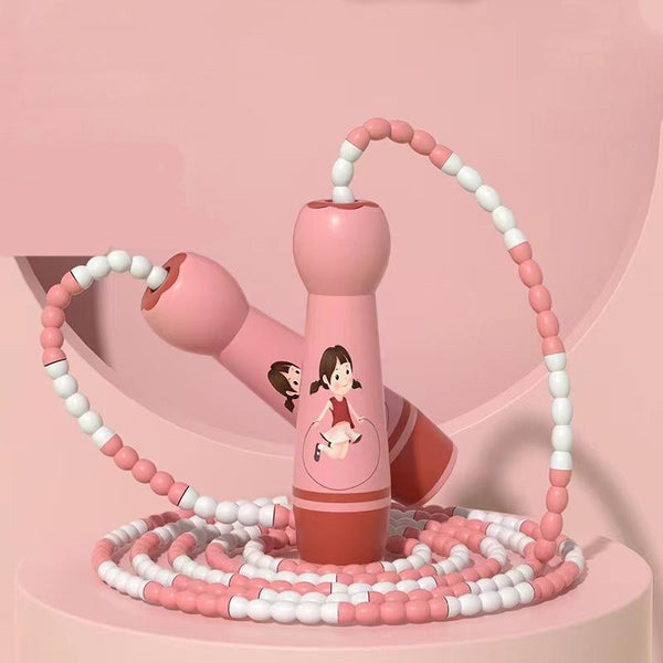 Wooden Handle Adjustable Jump Rope For Children Red Girl (Bamboo Rope)