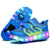 WS01 LED Light Ultra Light Mesh Surface Rechargeable Double Wheel Roller Skating Shoes Sport Shoes, Size : 27(Blue)