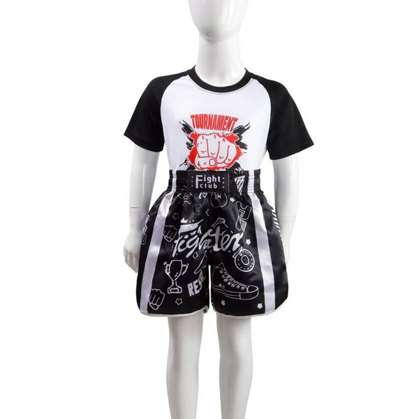 ZhuoAo Boxing Costumes Kids Sparring Fighting Shorts Muay Thai Free Fighting Tights Set, Style: Trophy Cup Black(M)