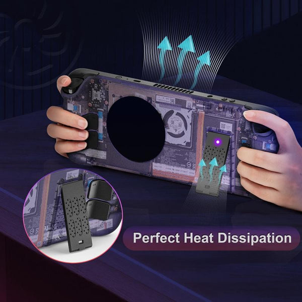 For Steam Deck DEVASO Transparent Thermal Back Case With Bracket Gaming Console Protective Case(Purple)