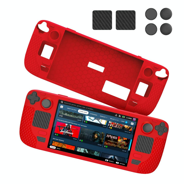 JYS JYS-SD011 For Steam Deck 7pcs/set Host Silicone Case With Joystick Cap+Touch Board Sticker Set(Red)
