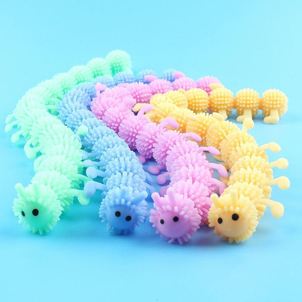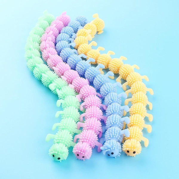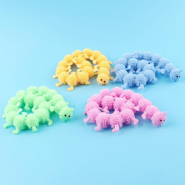 12 PCS Children Soft Rubber 16-Section Caterpillar Stretch Decompression Toy(Yellow)