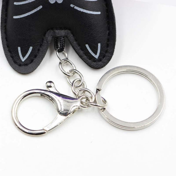 Fluffy Rabbit Fur Ball Cat Head Doll Toy Pompom Plush Keychains(Black)