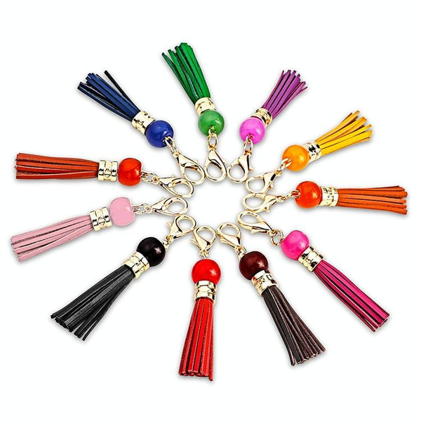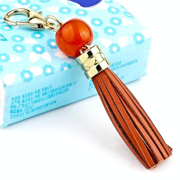 LS02 Cowhide Tassel Keychain Car Hanging Bag Pendant (Brown)