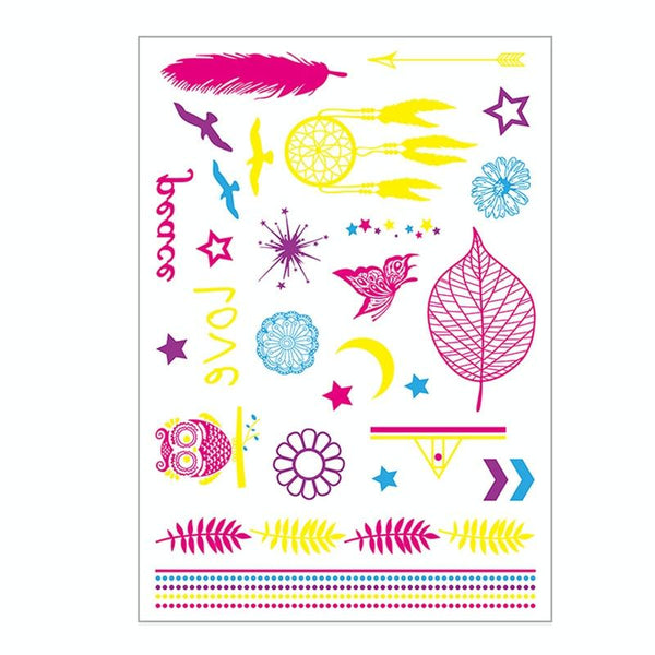 10 PCS Fluorescent Flower Arm Tattoo Sticker Face Sticker Waterproof Feather Tattoo Arm Tattoo Sticker(DKCS033)