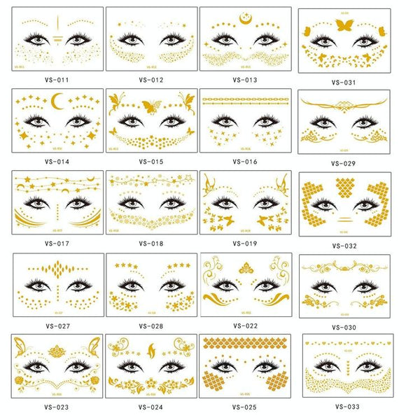 20 PCS Waterproof Bronzing Face Tattoo Stickers Party Masquerade Face Stickers(VS-015)