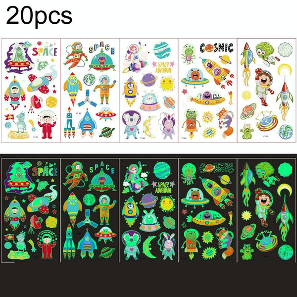 20 PCS Y01-05 Kids Cartoon Luminous Tattoo Sticker Waterproof And Sweat Proof Party Activity Face Sticker(Space)