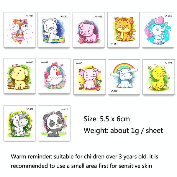 50 PCS Children Cartoon Animal Flower Arm Sticker Water Transfer Tattoo Sticker(W-065)