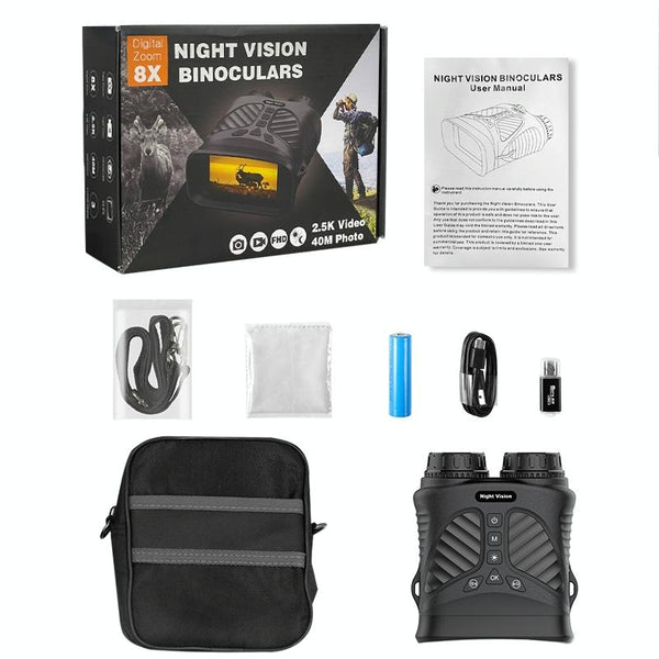 20. Packing list: 1x digital night vision binoculars, 1xType-C data cable, 1x storage bag, 1x lanyard, 1x user manual, 1x card reader, 1x cloth