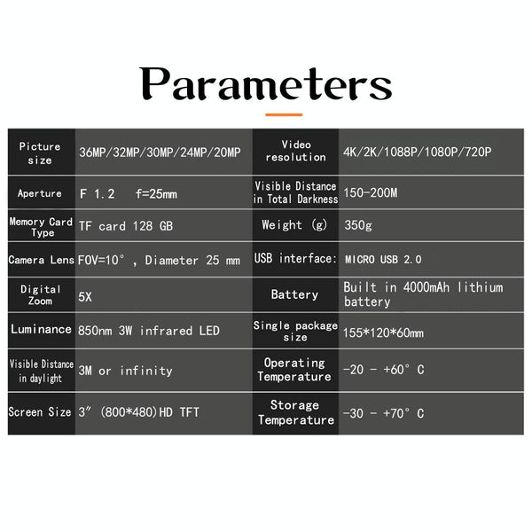 10. Infrared lamp: 3W, 850nm, strong infrared spotlight, 7 levels of infrared adjustment