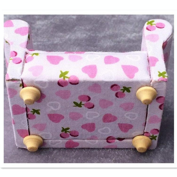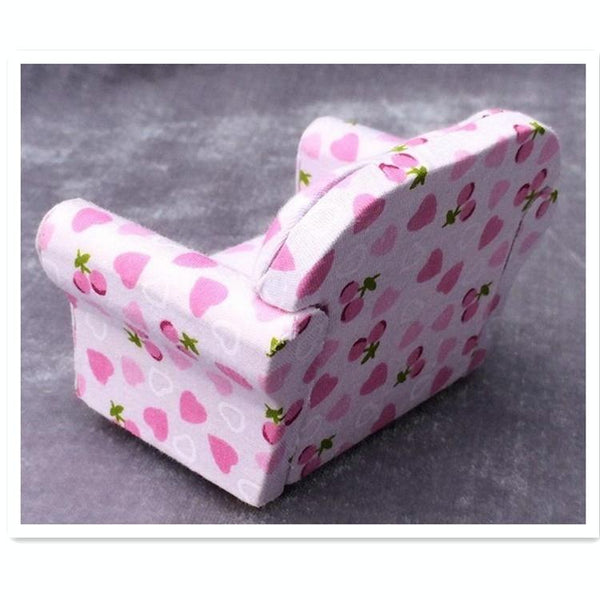1:12 Doll House Vintage Strawberry Sweetheart Single Mini Sofa Toy(Pink)
