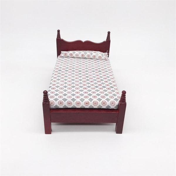 1:12 Mini House Toy Pocket Furniture Simulation Single Bed(Mahogany)