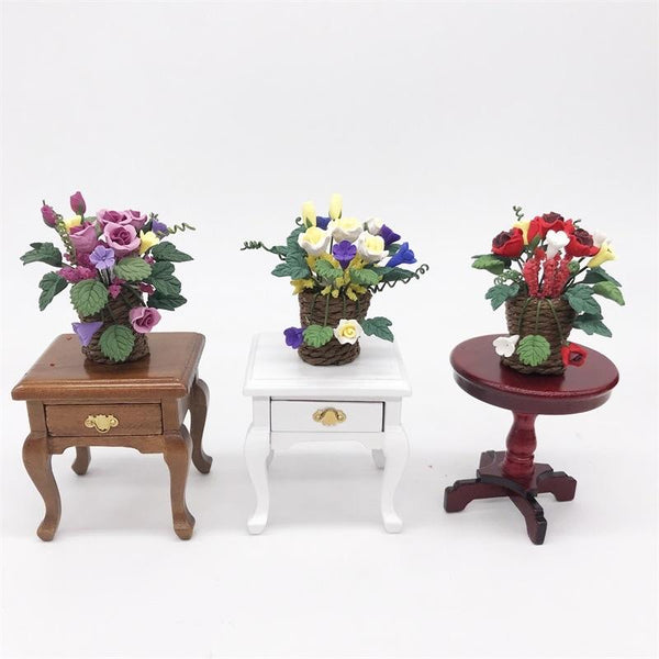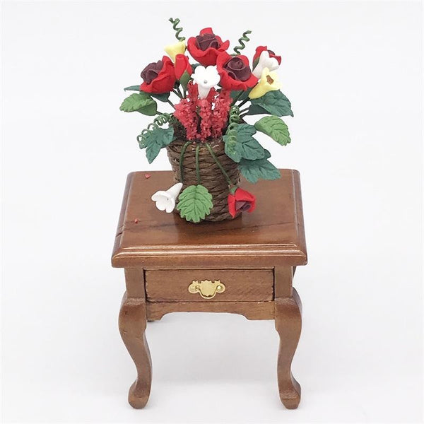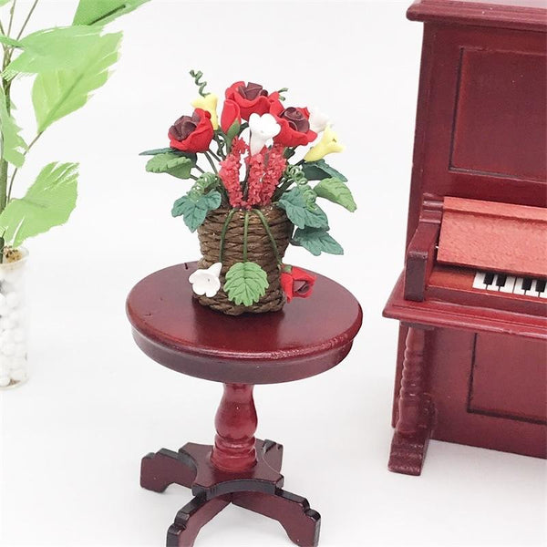 1:12 Mini House Toy Pocket Ornaments Simulation Woven Basket Red Rose(Red)